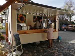 Kulinarisch werden wir verwöhnt mit deftigem Gulasch und vegetarischem Falafel, verschiedenen Kuchen, Kaffeespezialitäten, Kaffee, Tee, Bier und alkoholfreie Getränke.